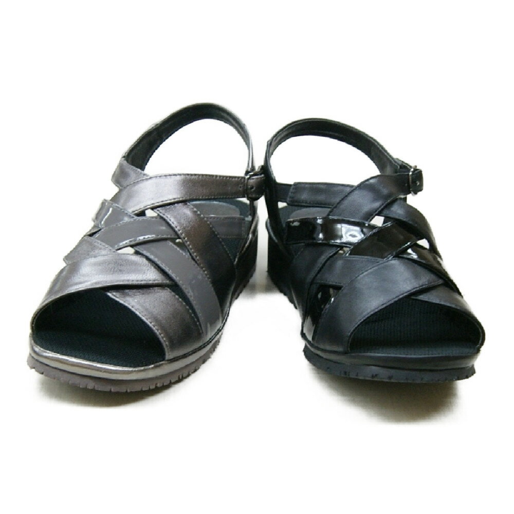 【A-OK】Wゴムで脱ぎ履き楽々♪エナメル×本革のクロスストラップサンダル《KY2321》着脱簡単/履き心地やわらか/歩きやすい/コンフォート/3E/日本製/本革/CASUAL&SPORT/