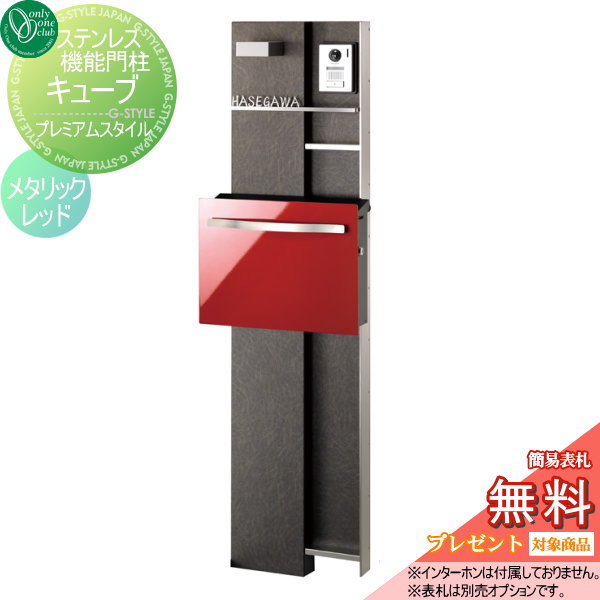 機能門柱 ポスト 照明 3点セット オンリーワンクラブ オンリーワンエクステリア 【ステンレス機能門柱キューブ プレミアムスタイル メタリックレッド】 機能門柱 ポスト 照明 3点セット